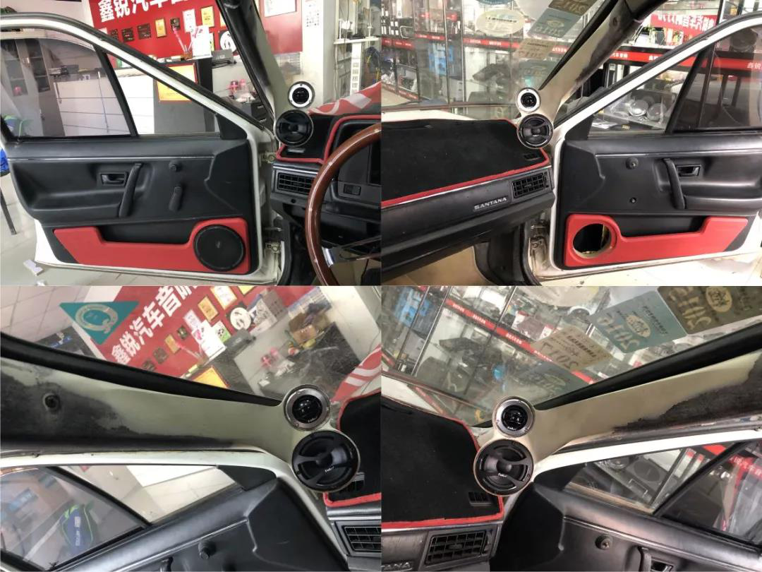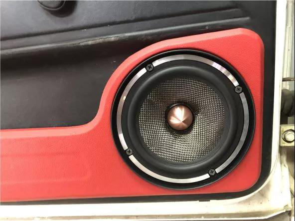 用一套芬朗RE-6.3三分频套装喇叭作为大众桑塔纳的前声场,特有的球顶丝膜高音单元和中音单元安装于A柱倒模处,中低音单元安装在原车门板喇叭位,这样的改装既能增强喇叭发声性能外也能更耐听,更能让扬声器出来的声音衔接更加自然,更加顺耳。当音乐响起的瞬间,能让人感受到歌声中的细腻情感,让人陶醉其中。