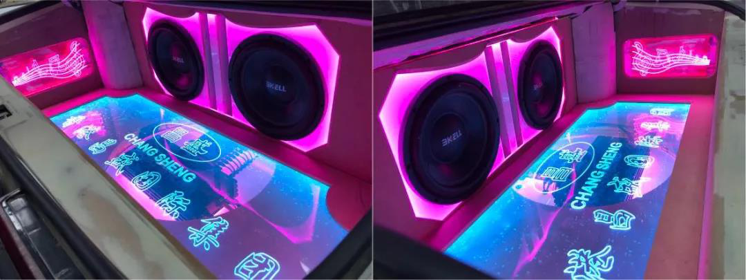 两台八寸超低音倒模安装于尾箱