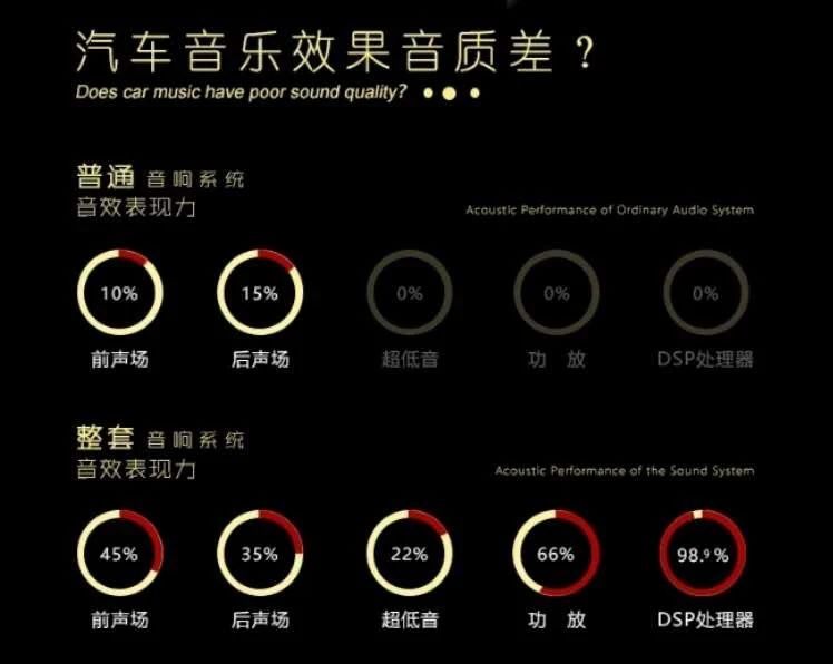前声场安装了一套德国歌德M1-216套装喇叭,这套喇叭无论人声还是摇滚都表现的绰绰有余,所播放的人生音乐,给人感觉栩栩如生,圆润丰满,优秀的速度感和节奏感,则能让摇滚等流行音乐有更浓重的现场气氛的渲染,给车主带来现场感。