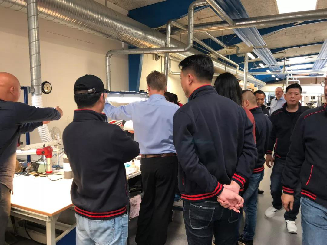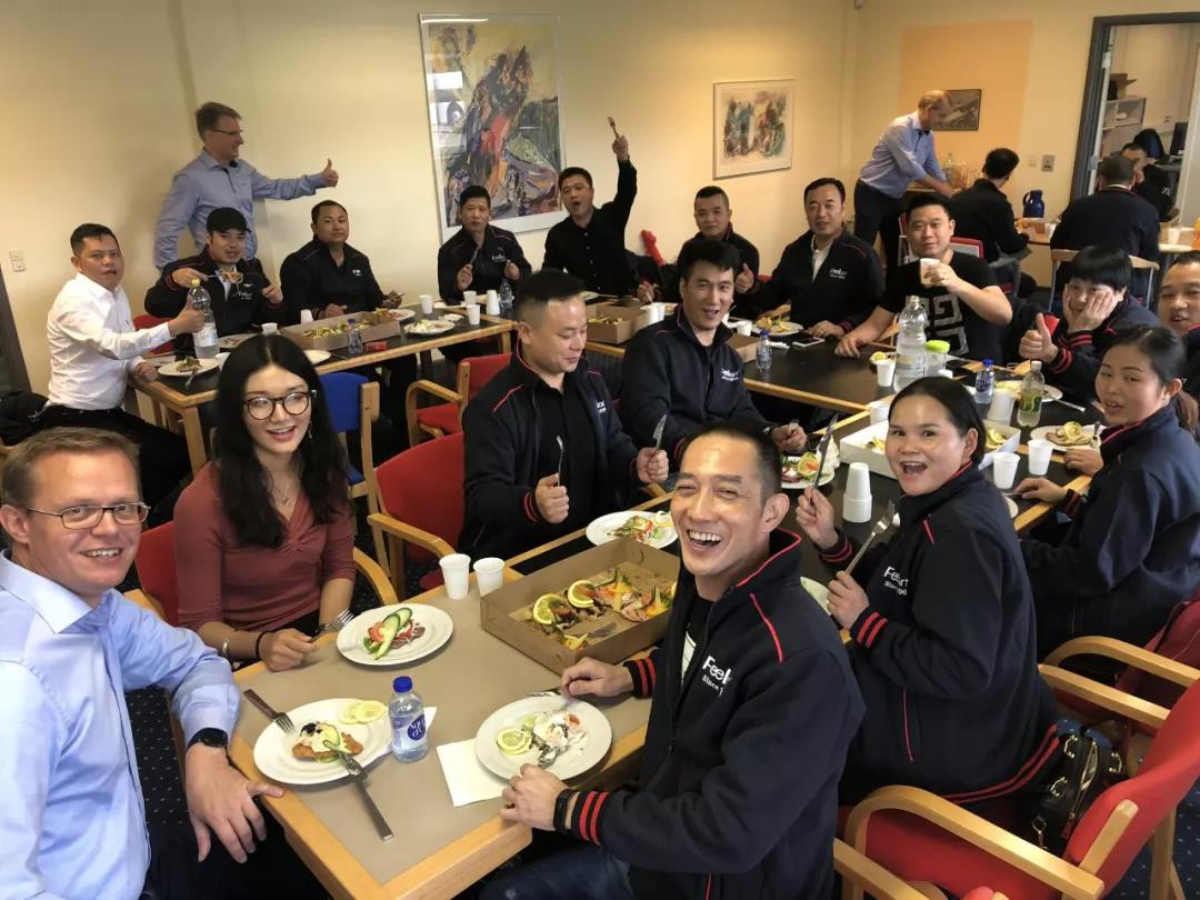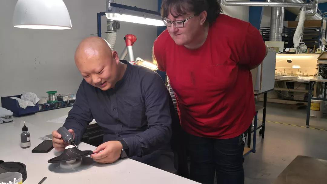 午后,大家开始在工厂自行参观,由于上午一起制作喇叭和一起共进午餐,大家已经建立起了友谊,大家与“师傅”合影留恋。(不得不说,欧洲人是真的很高啊,瞬间盖过了芬朗伙伴们的气势,不过中国人在世界各地找回气势应该都很简单,你只需要问一句“Do you know Chinese kung fu”?不过此次的友好之旅就不用了。)