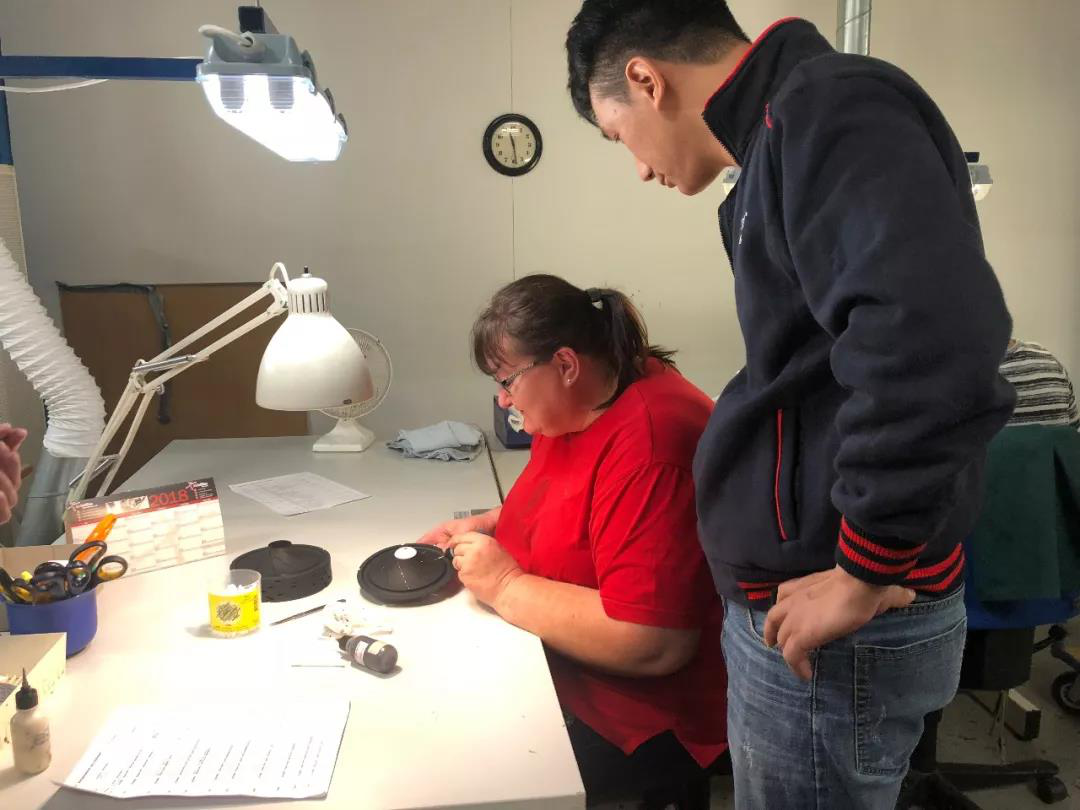 而惊喜也是说来就来,Jann是个细心的人,看见大家这么感兴趣,决定让每个人都可以上去尝试制作一套喇叭,并且这套喇叭可以签上自己的名字带回国作为纪念,由于专利问题,大家不参观手稿即可。