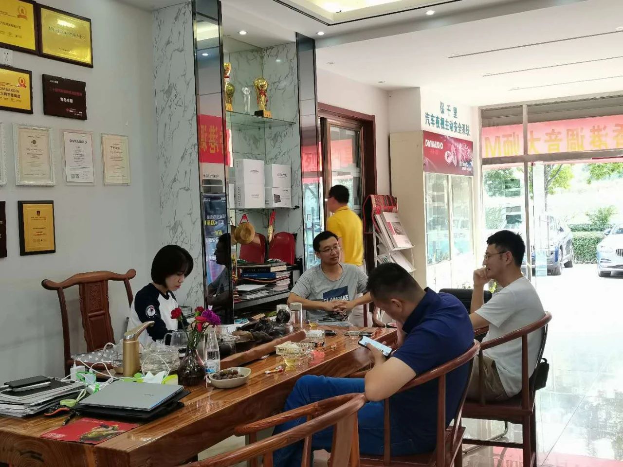 ,等待大师为自己的爱车进行调音。还有很多车友特意过来店里让大师为自己配置音响系统现场改装