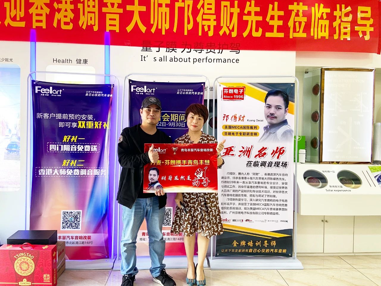 九天的调音活动,财哥让广大车友见证了他“金耳朵”的厉害之处,音改行业最重要的就是客户的口碑以及车友对本店的信赖度,本次活动促使丰慧在当地的影响力又稳步上升~(年轻漂亮的老板娘与财哥进行合影)